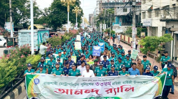 আমার পুলিশ আমার দেশ, বৈষম্যহীন বাংলাদেশ’ এই স্লোগানকে সামনে রেখে বর্ণিল র্যালি ও নানা আয়োজনে উদযাপিত হয়েছে রাজশাহী মেট্রোপলিটন পুলিশ (আরএমপি) ৩৩তম প্রতিষ্ঠাবার্ষিকী। ১৯৯২ সালের এই দিনে আনুষ্ঠানিকভাবে যাত্রা শুরু